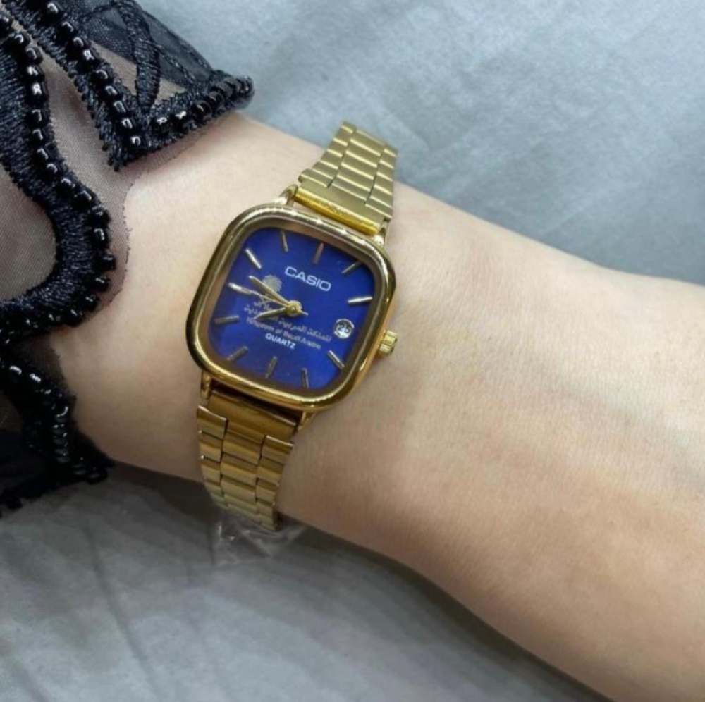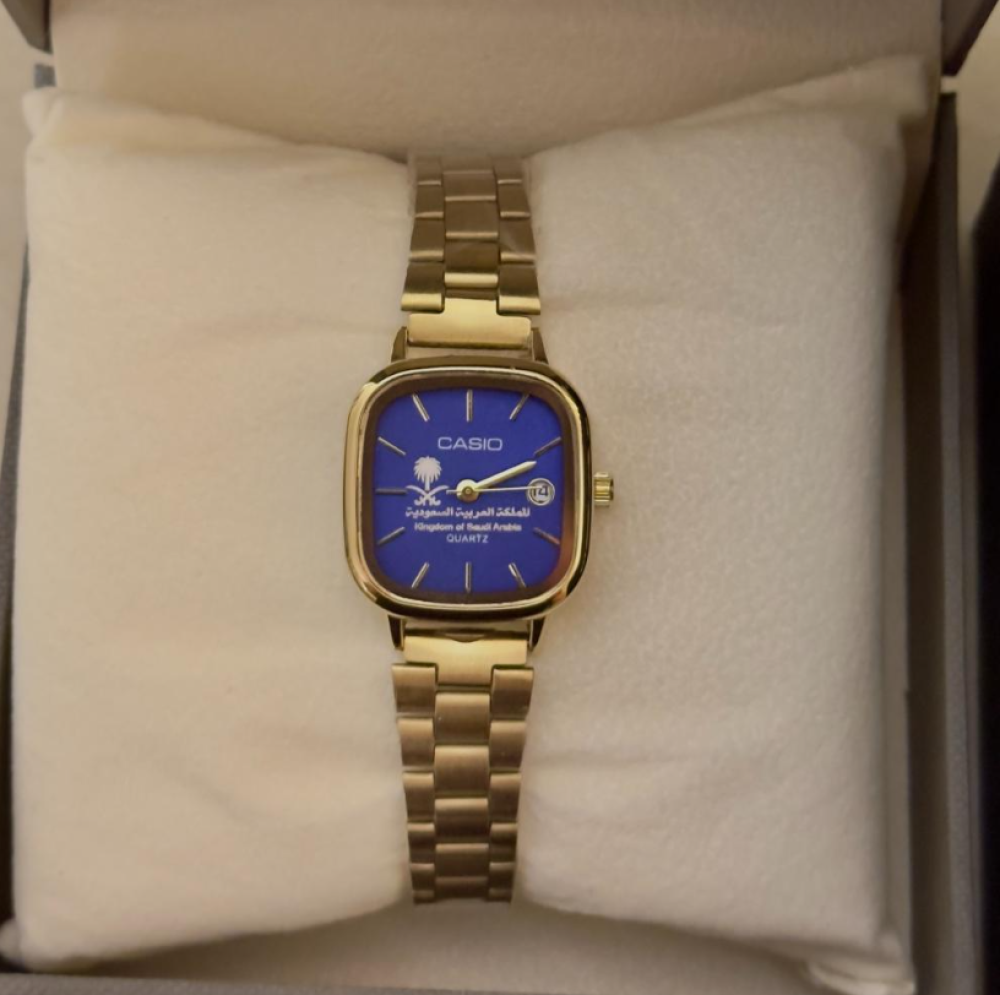 ساعة كاسيو نسائي ذهبي ميناء ازرق - شعار السعودية