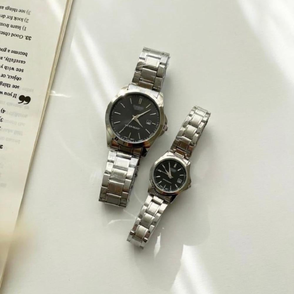 الساعتان متطابقتان بتفاصيل دقيقة تعكس الذوق الراقي والانسجام بين الشريكين.