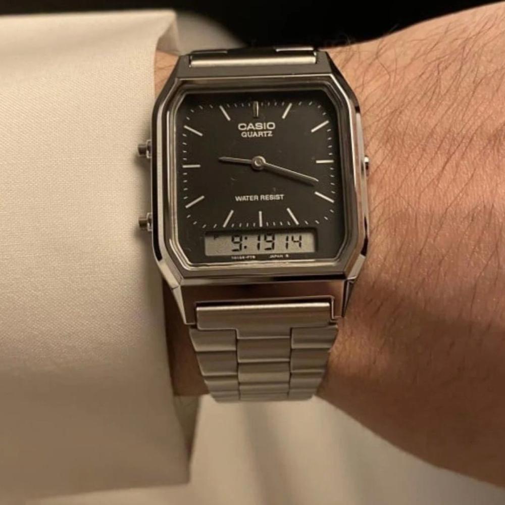 ساعة مثالية تجمع بين العصر القديم والموضة الحديثة بتصميم كلاسيكي للجنسين من Casio ساعه مع شاشة رقمية.