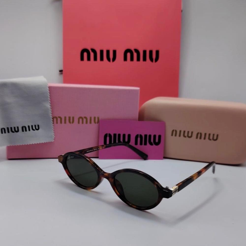 أضيفي لمسة من الفخامة لإطلالتك مع نظارة “Miu Miu” ذات التصميم الدائري الكلاسيكي والإطار البني المموج الأنيق. عدسات داكنة عالية الجودة لحماية كاملة من أشعة الشمس، مع تفاصيل ذهبية راقية تعكس أسلوبك العصري.